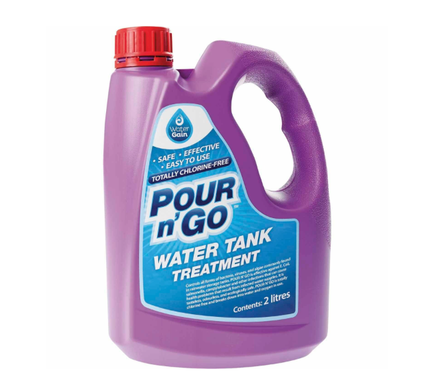 Pour n Go RV & Marine can be safely used RVs, caravans and boats to sterilise the water tanks. Frequent use also prevents the build up of bio films in tanks and water systems. Is ideal for the protection of water supplies stored in plastic containers and bottles used as your emergency water supply in an event of disaster. Controls all forms of bacteria, viruses and algae commonly found in water.
